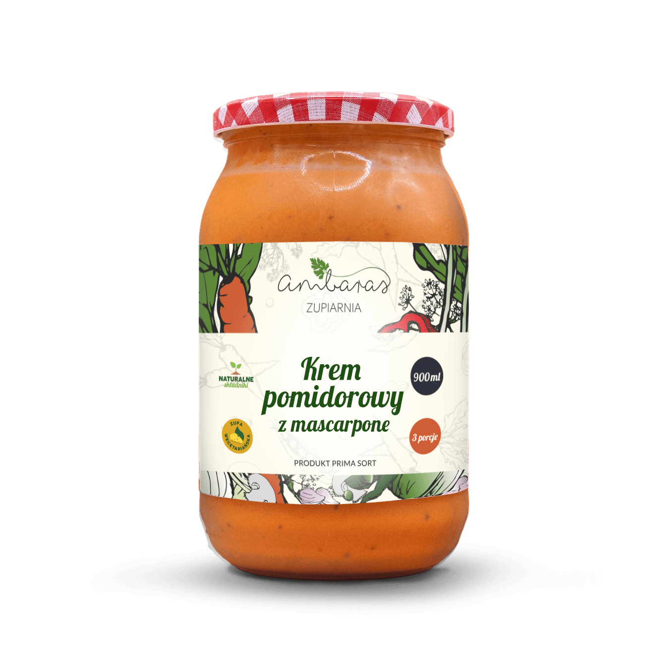 Składniki: woda, pulpa pomidorowa, pomidory, ziemniaki, ser mascarpone, śmietanka 30%, cebula, włoszczyzna suszona, olej, czosnek, bazylia, przyprawy: cukier, sól, czosnek mielony, pieprz