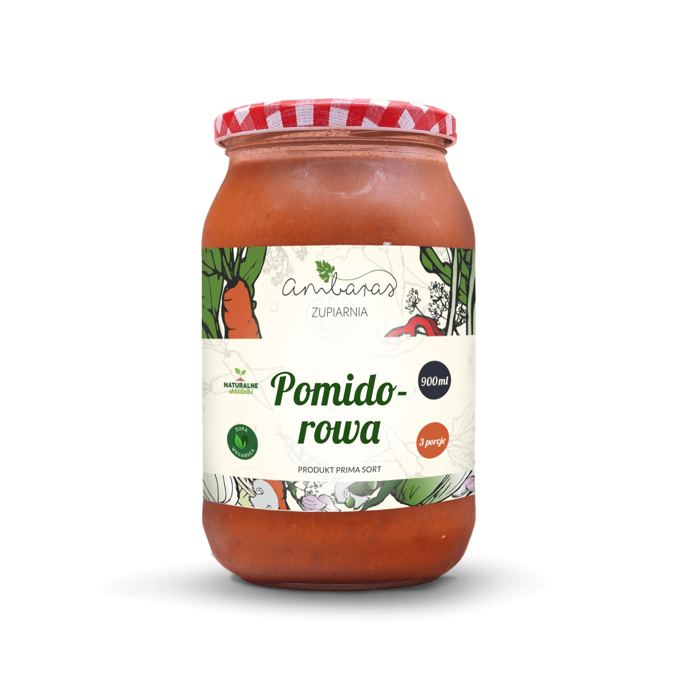 Ta zupa to nasza duma i wizytówka. Nie ma bardziej uniwersalnej zupy niż nasza pomidorówka. Możesz ją skonsumować na wiele sposobów! W podstawowej wersji jest w 100% roślinna, ALE stacjonarnie goście wybierają ją z mozzarellą i / lub bekonem no i oczywiście makaronem lub ryżem. Dostępna codziennie w naszych lokalach. Bestseller wszechczasów. Uwielbiana przez małych i dużych. Dobra z pietruszką, albo szczypiorkiem. Twój must have w spiżarni.