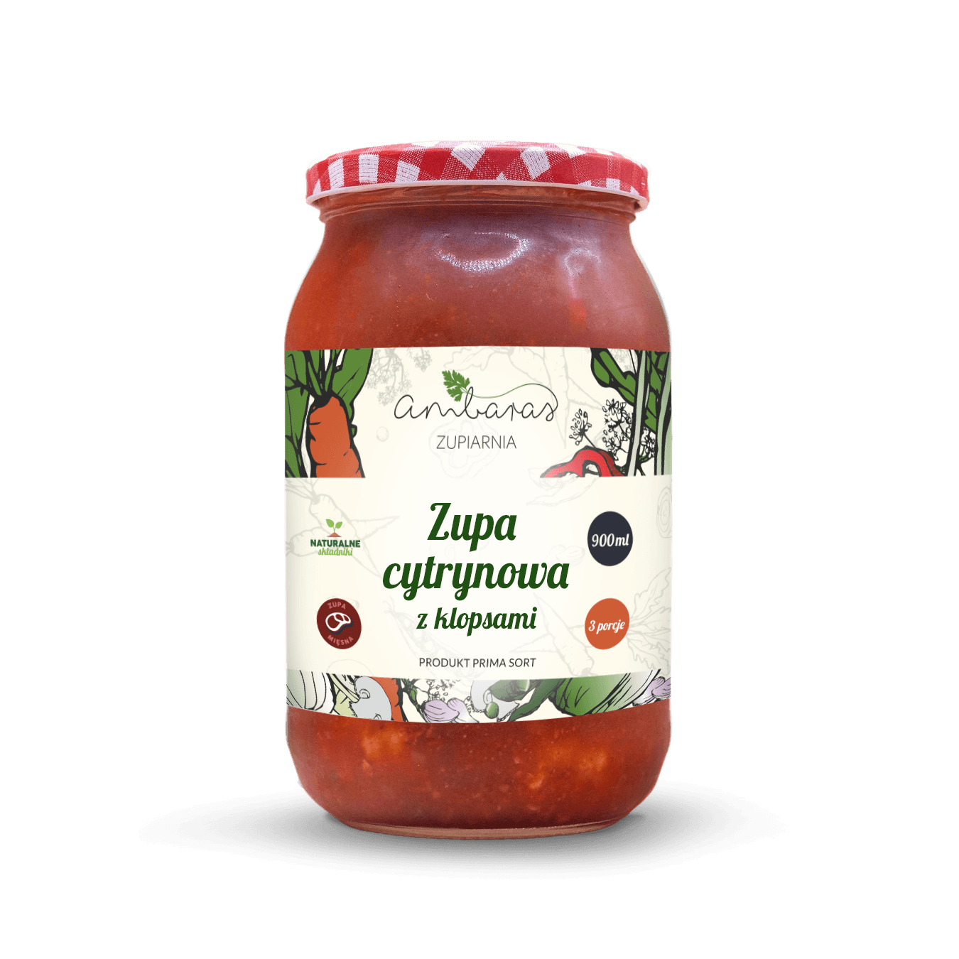 Składniki: woda, klopsy wieprzowe 21,6% (mięso mielone wieprzowe, jaja, mąka z cieciorki, sól, przyprawy), pomidory, papryk , marchew, seler, cebula, trawa cytrynowa 1,1%, sól, cukier, sok z cytryny 0,6%, czosnek, przyprawy (kolendra, papryka wędzona, papryka słodka, pieprz), skórka z cytryny, liście kaffiru.